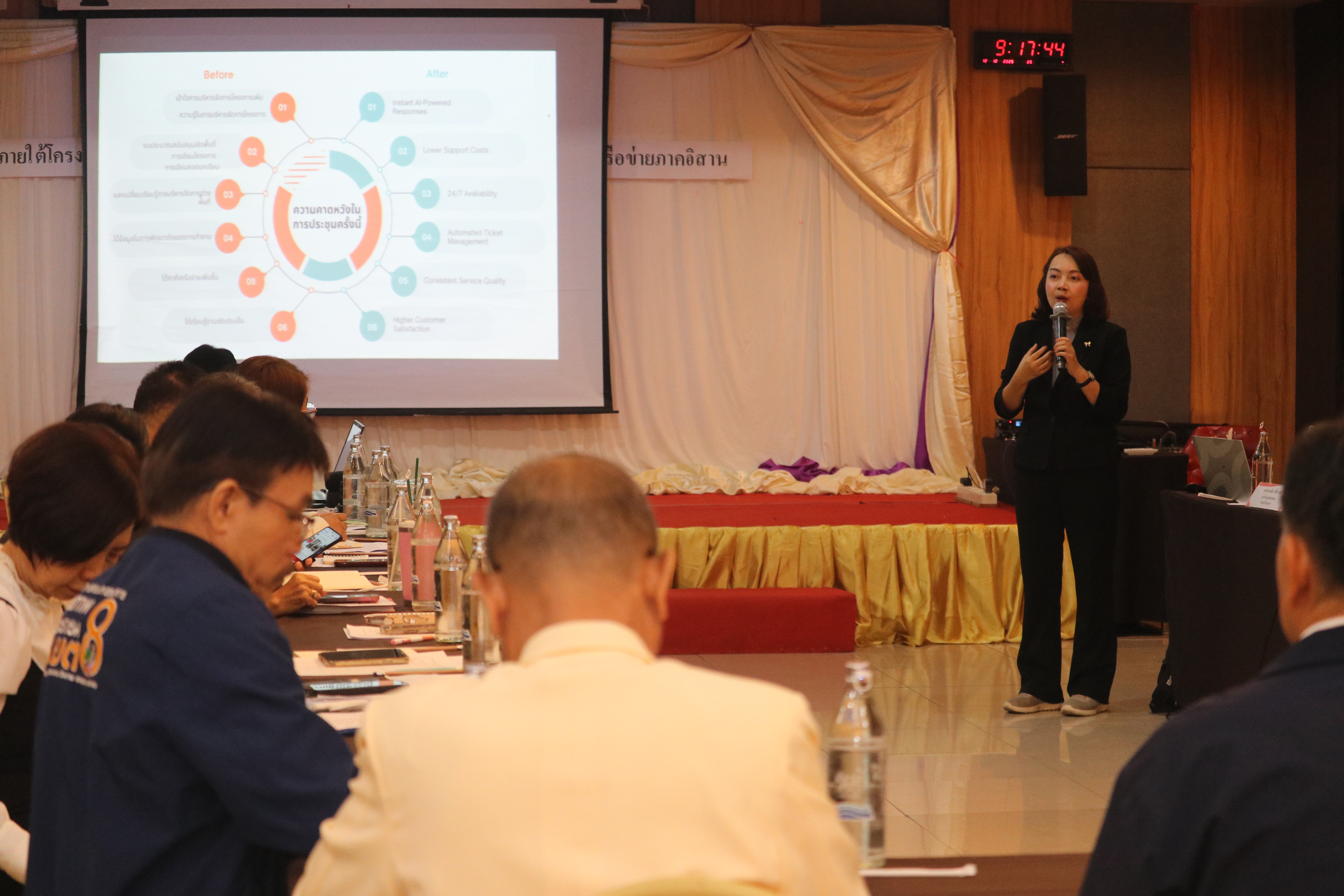 การอบรมในครั้งนี้ ผู้เข้าร่วมได้สะท้อนมุมมองสำคัญในการยกระดับการทำงาน หนึ่งในนั้นคือ อาจารย์นันทนา ควรรณสุ จากโรงพยาบาลโพนสวรรค์ ชี้ให้เห็นว่าหัวใจสำคัญไม่ได้อยู่ที่การลงมือทำ แต่เป็นการปรับมุมมองสู่การบริหารแบบมุมสูง เพื่อให้เห็นภาพรวมของโครงการตั้งแต่ต้นน้ำ กลางน้ำ ไปจนถึงปลายน้ำ คุณนันทนาอธิบายว่าการขยับบทบาทจากผู้ปฏิบัติมาสู่ทีมวางแผนเชิงวิชาการ ช่วยให้เห็นความเชื่อมโยงในแต่ละระยะของโครงการได้ชัดเจนขึ้น การบริหารจัดการในรูปแบบนี้ช่วยให้สามารถ "รีเช็ก" และปรับแก้ปัญหาที่เกิดขึ้นระหว่างทางได้ทันที เพื่อป้องกันไม่ให้งานสะดุด ที่สำคัญคือการเปิดพื้นที่ให้ผู้มีส่วนได้ส่วนเสีย (Stakeholders) ได้ให้ข้อมูลป้อนกลับ (Feedback) เพื่อให้การดำเนินงานสอดรับกับความต้องการของทุกฝ่ายตลอดทั้งโครงการ