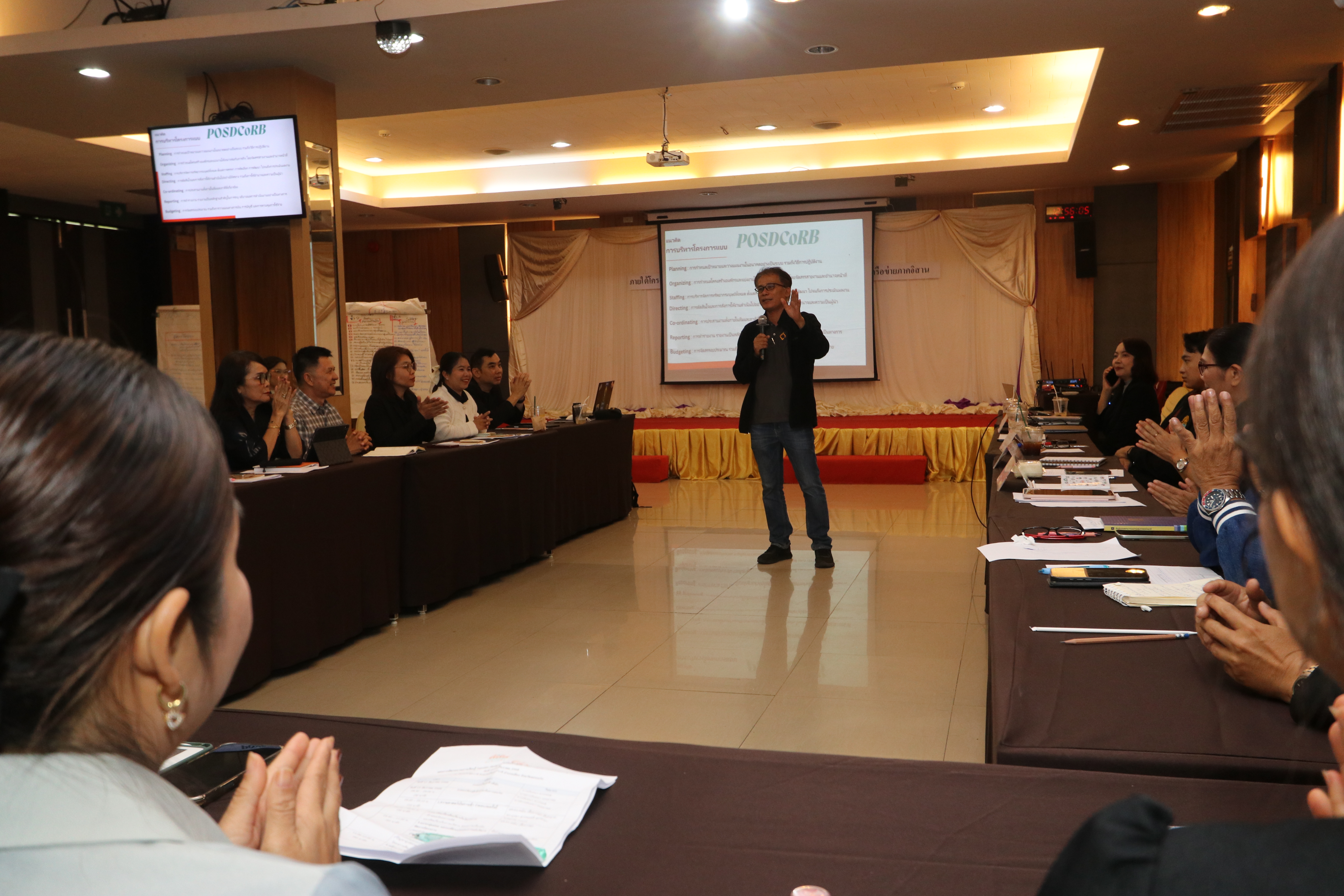 ในส่วนเนื้อหาการบริหารจัดการโครงการในวงฝึกอบรม อ.นันทนา ได้หยิบยกทฤษฎีการบริหารจัดการอย่าง POSDCORB มาเป็นเครื่องมือสำคัญในการรีเช็กการทำงาน เพื่อให้การใช้ "คน งบ งาน" เกิดประสิทธิภาพสูงสุด