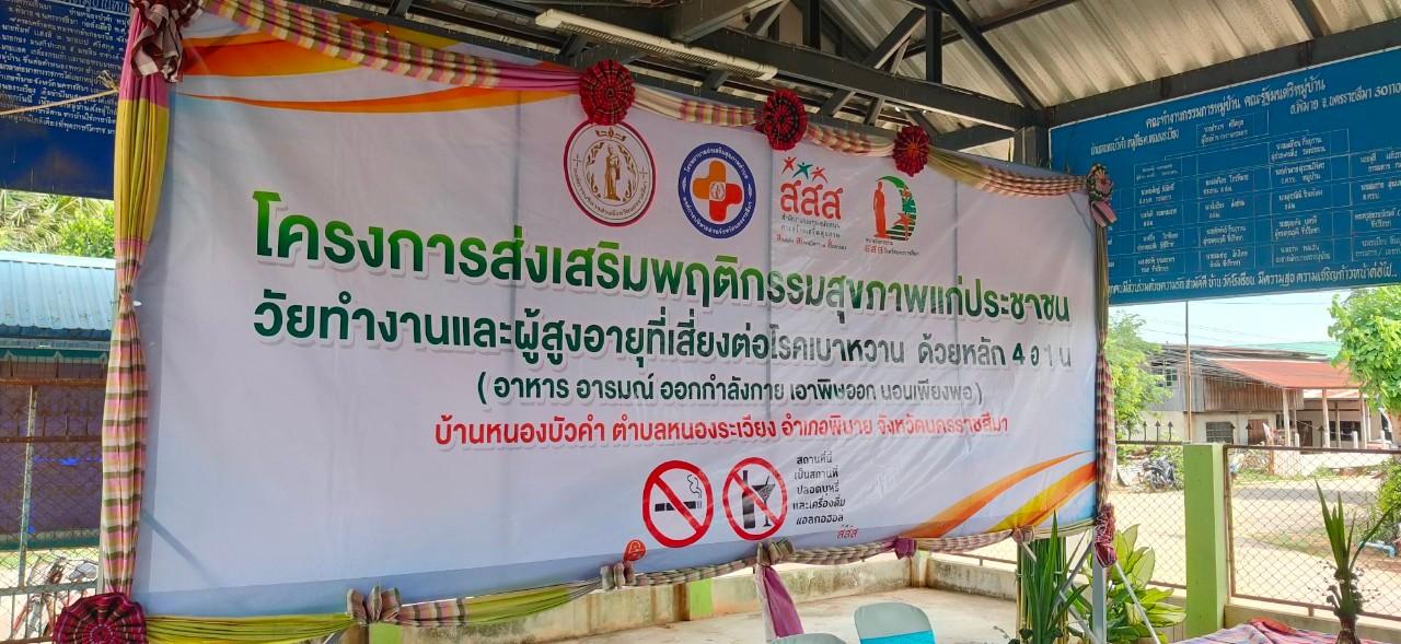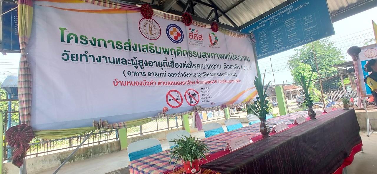 โครงการส่งเสริมพฤติกรรมสุขภาพแก่ประชาชนวัยทำงานและผู้สูงอายุที่เสี่ยงต่อโรคเบาหวาน ด้วยหลัก 4 อ. 1 น. บ้านหนองบัวคำ
